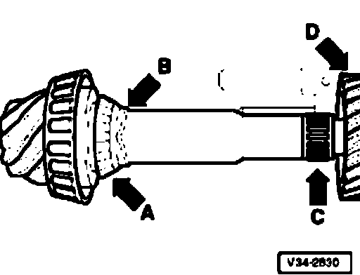 - Pull pinion shaft out of hollow shaft -D-, while catching tapered rollers -A- (23 rollers).