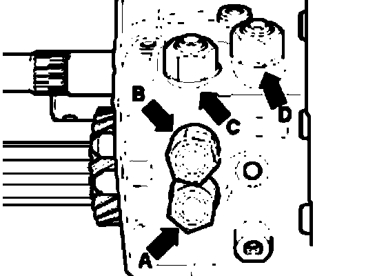 - Loosen and unbolt 2 bolts (arrows -C-) for securing end cover to manual transmission and support plate (arrow -D-).