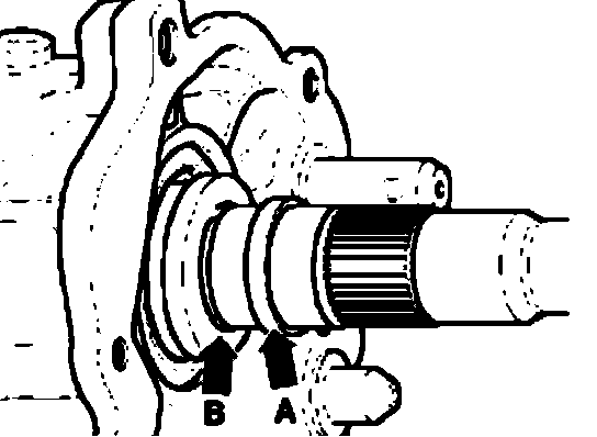 - Using pliers, take off circlip (arrow -B-) for inner race of cylindrical roller bearing.