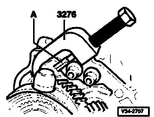 - Insert selector shaft locking bolts -A- with sealing paste AMV 188 001 02 into transmission housing and tighten to prescribed torque.