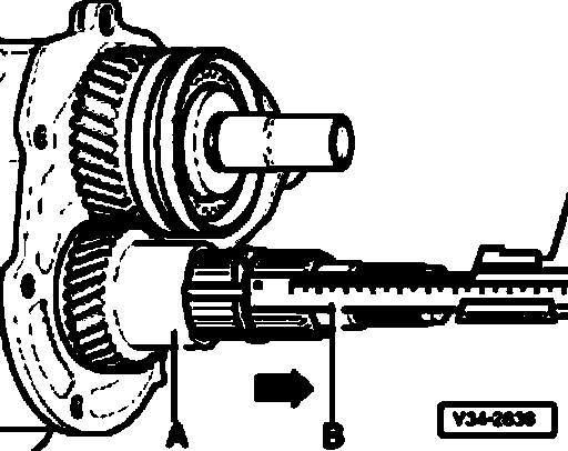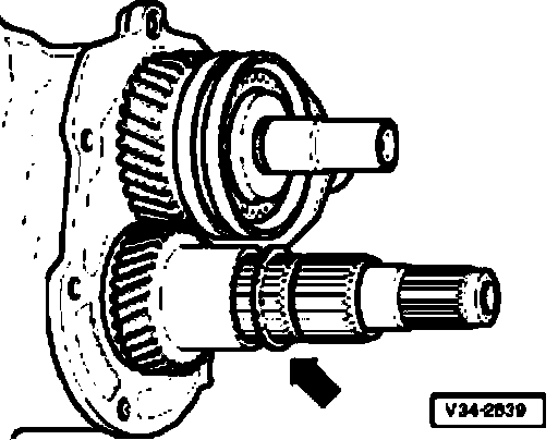 ^ However, if the 6th gear wheel must be pressed off, remove pinion shaft from hollow shaft.