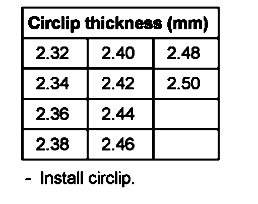 - Determine thickest 2nd circlip which can still just be inserted and install.