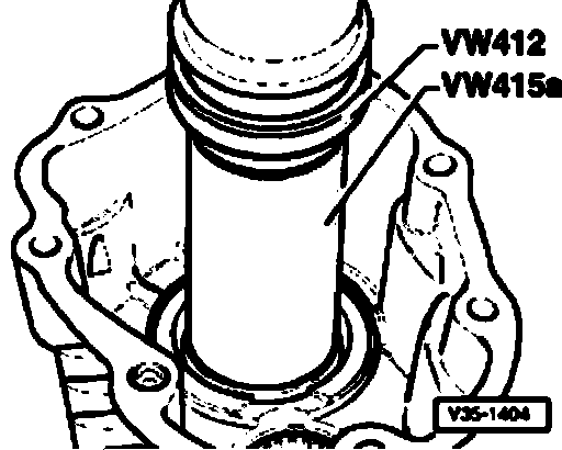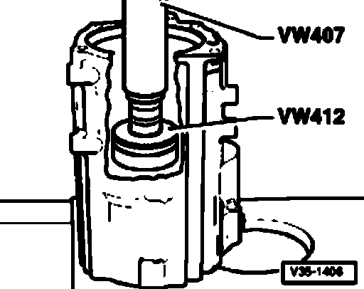 - Set press tool VW 412 on bearing with collar facing up.