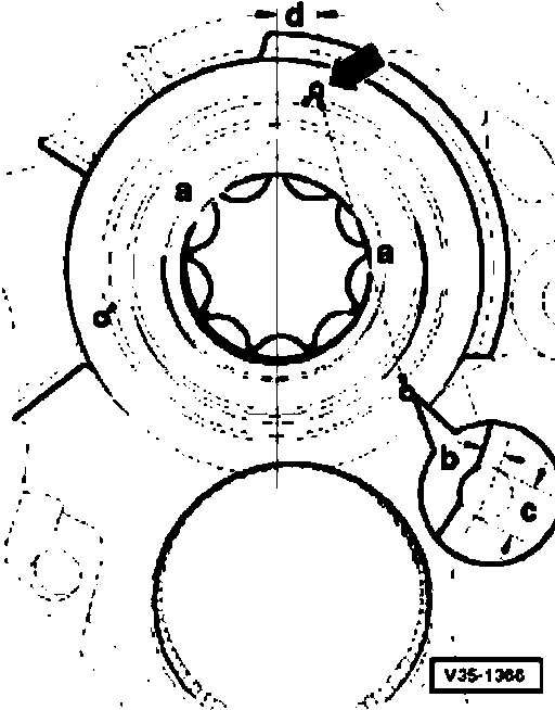 Fig. 5 Peening baffle ring when replacing 4-point bearing for input shaft