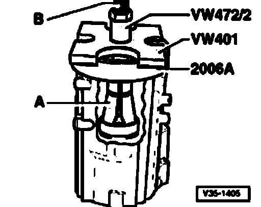 Collar of tube VW 415A faces press tool VW 412.