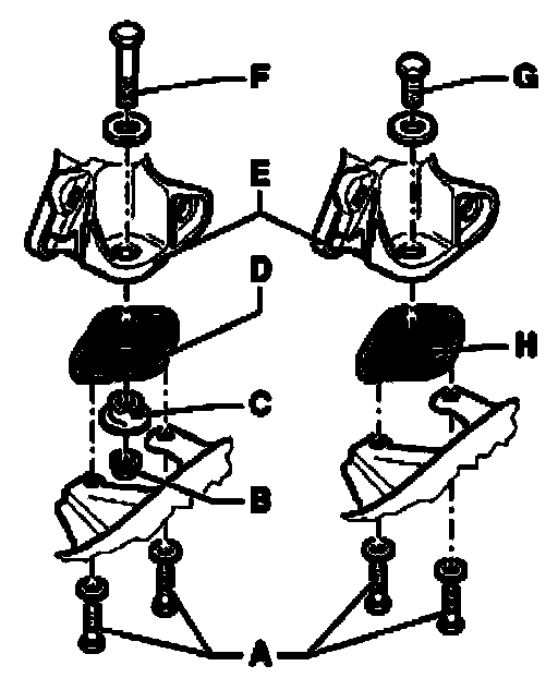 Left and right transmission supports - E - remain on transmission.