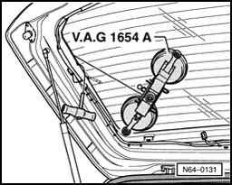 - As shown in illustration, one suction cup can be removed from Spooling tool V.A.G 1654. By doing this, roller of Spooling tool V.A.G 1654 A can be placed closer to window flange.