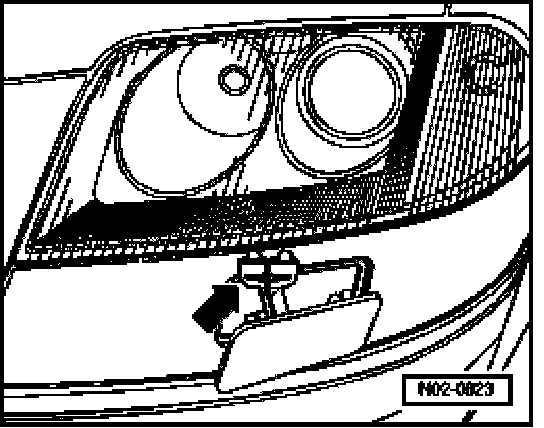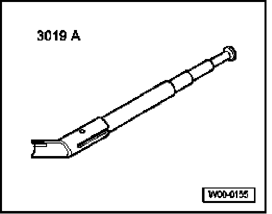 - Lift washer jet assembly -arrow- to stop and use tool 3019 A to adjust spray to specified areas.