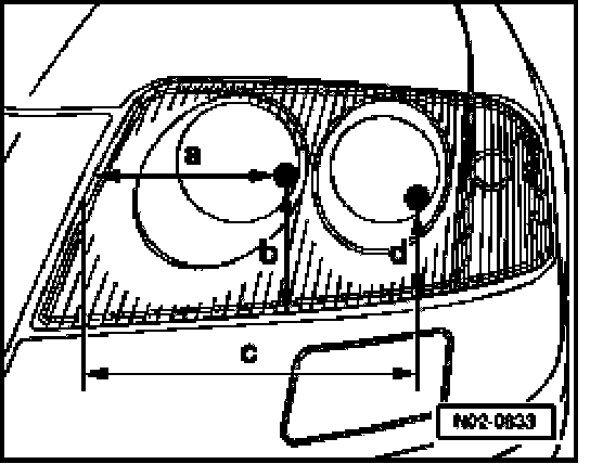 Adjustment values for left headlight (values for right headlight in mirror image)