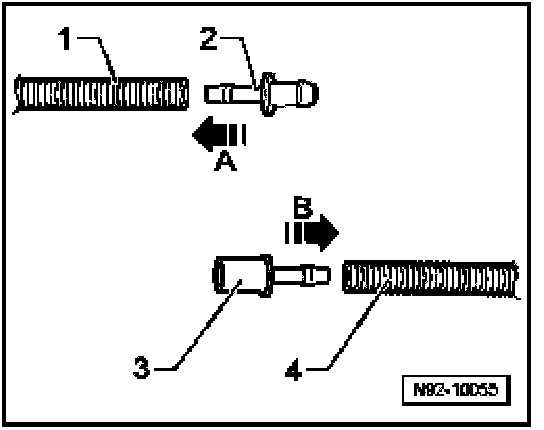 - Insert repair adapter -3- into hose -4-, -B arrow-.
