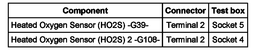 - The respective fuses of Heated Oxygen Sensor (HO2S) -G39- and Heated Oxygen Sensor (HO2S) 2 -G108- must be OK
