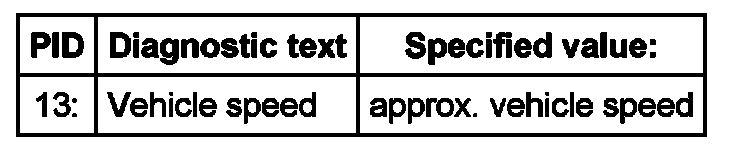 - Select the measuring value "PID 13: Vehicle speed".