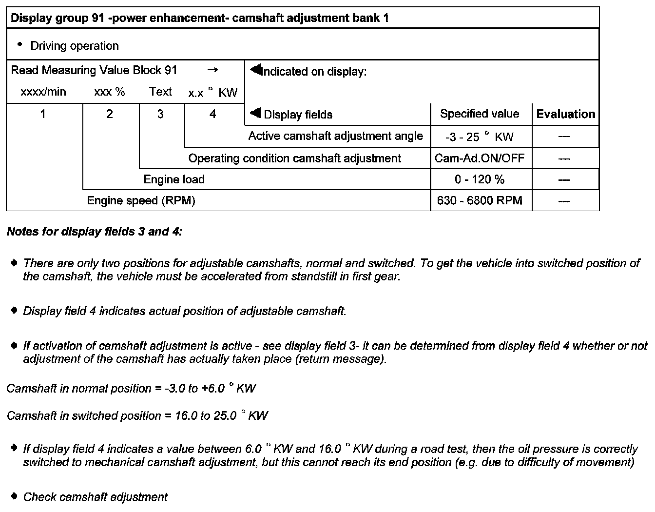 Display group 91 -power enhancement- camshaft adjustment bank 1