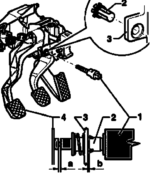 Switch - 1 - must make contact on clutch pedal - 4 -.