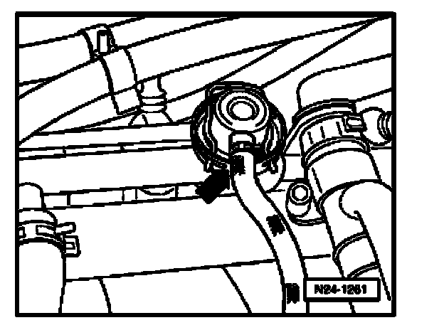 - Wait until pressure has risen, and then switch off ignition. Simultaneously pinch return hose tightly together.