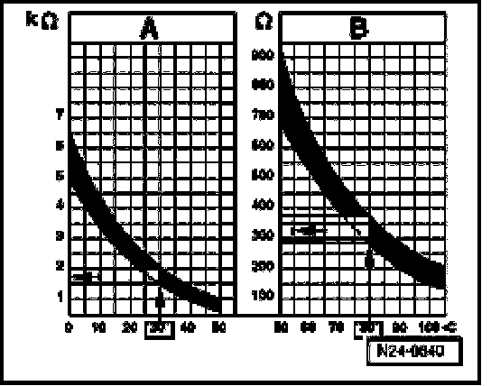 - 30 degrees C is in range A and corresponds to a resistance of 1.5 to 2.0 kohms