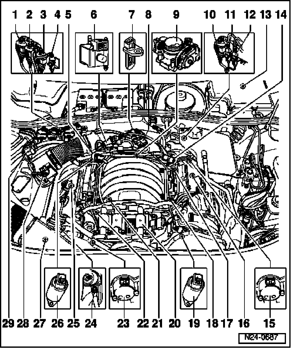 16 Heated Oxygen Sensor (HO2S) 2 -G108- bank 1 before catalytic converter, 50 Nm