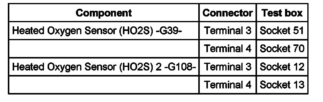 - The respective fuses of Heated Oxygen Sensor (HO2S) -G39- and Heated Oxygen Sensor (HO2S) 2 -G108- must be OK
