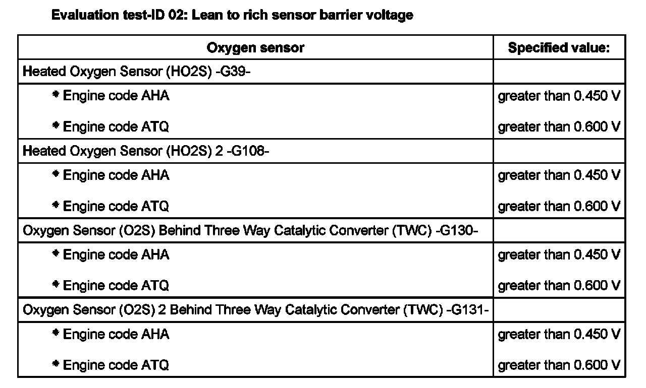 Evaluation test-ID 01: Rich to lean sensor barrier voltage