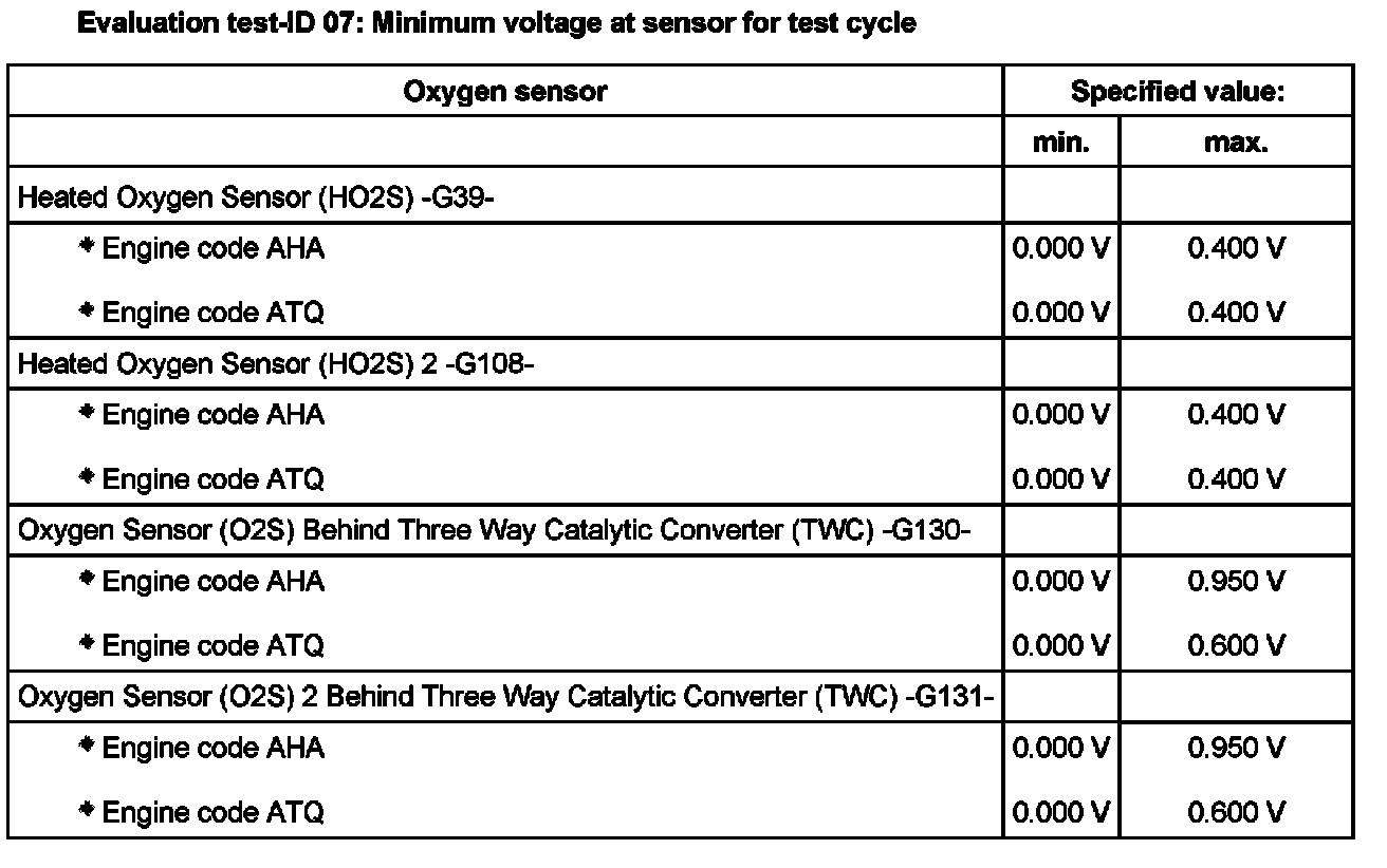 The values of the individual oxygen sensor test results must reach the specified value or must be within the min.- and max.- limits.