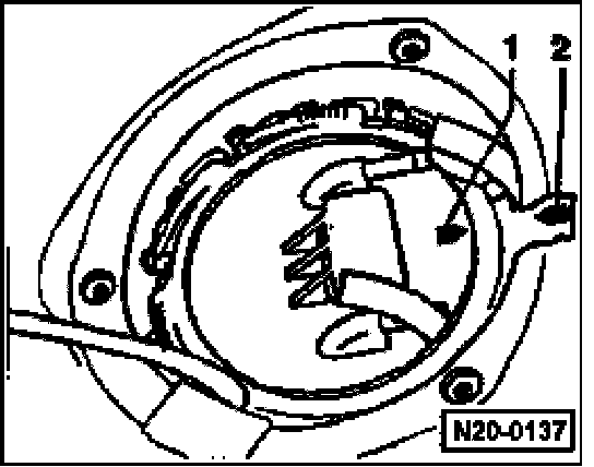 Marking on flange -1- must align with marking on fuel tank -2-.