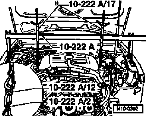 ^ Install engine support bracket 10-222A with additional hooks 10-222A/2 and shackle 10-222A/12 as illustrated.