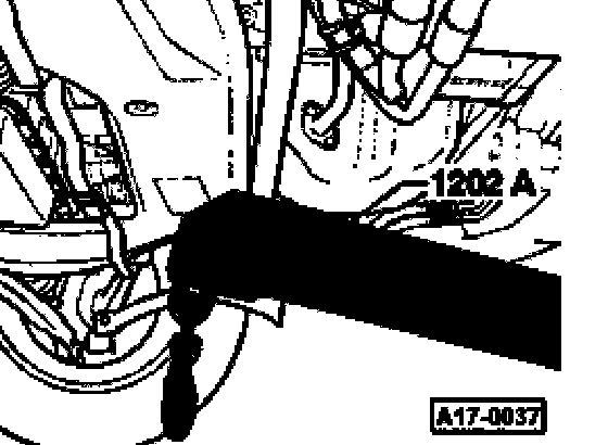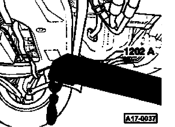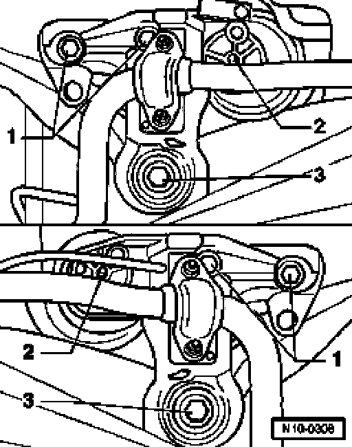^ Remove subframe front bolts -1- on left and right-hand sides. Then remove bolts -3-.