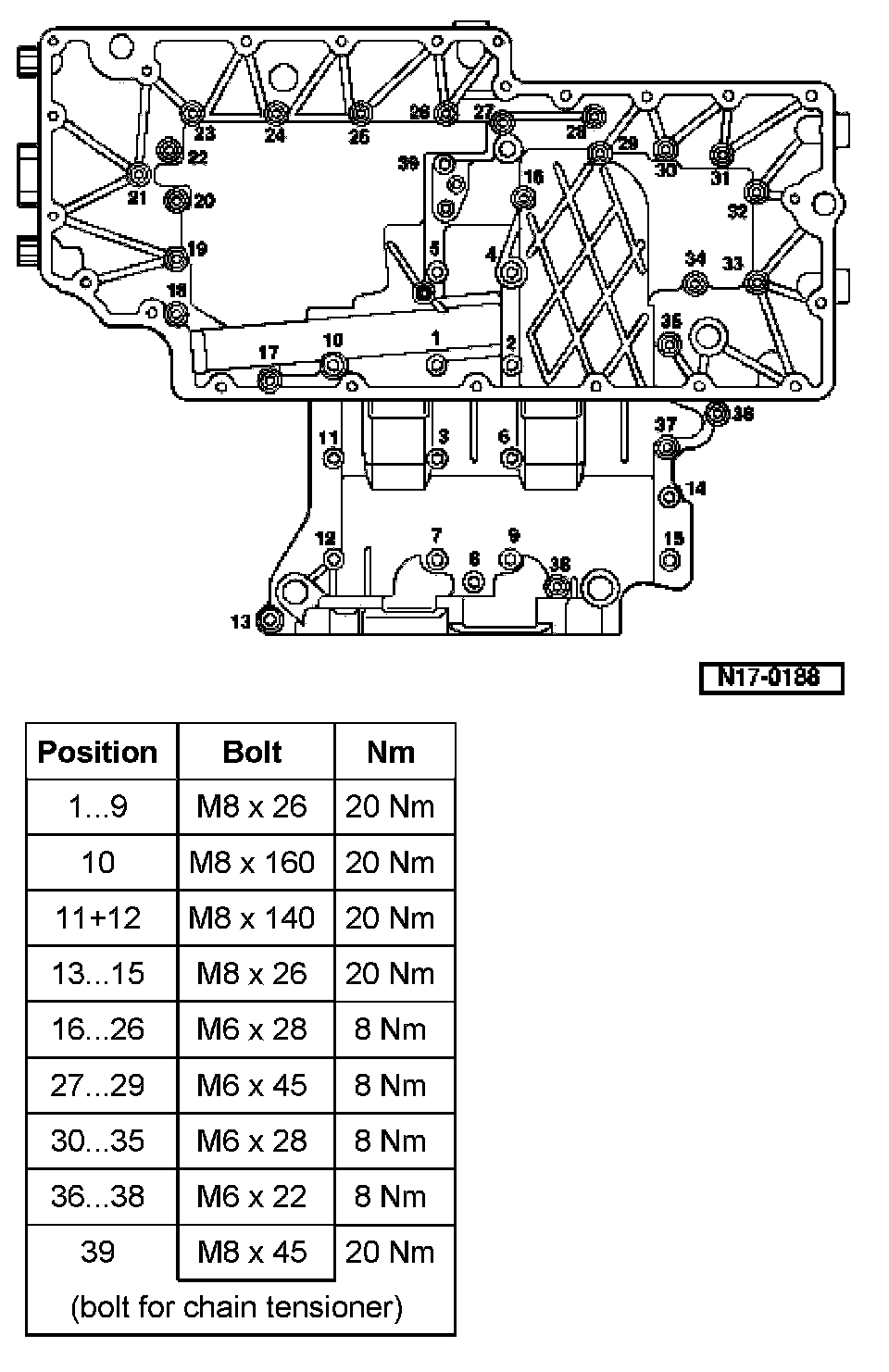^ Tighten coolant / refrigerant line retainers on upper sump to 8 Nm.