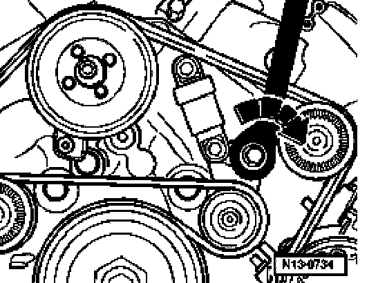 ^ Ensure, before installing ribbed belt, that all ancillaries (alternator, air conditioning compressor, power steering pump and coolant pump) are secured tightly.