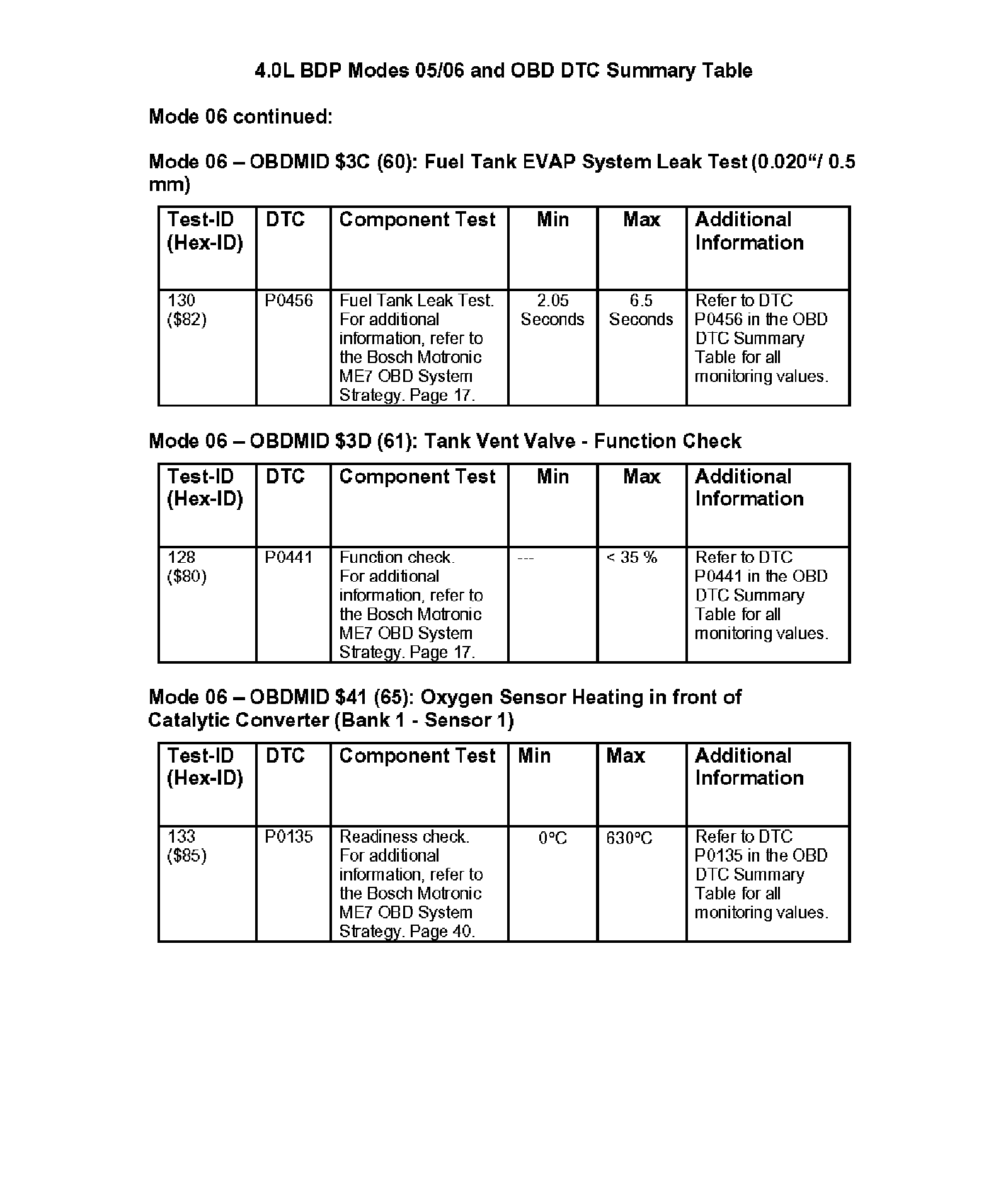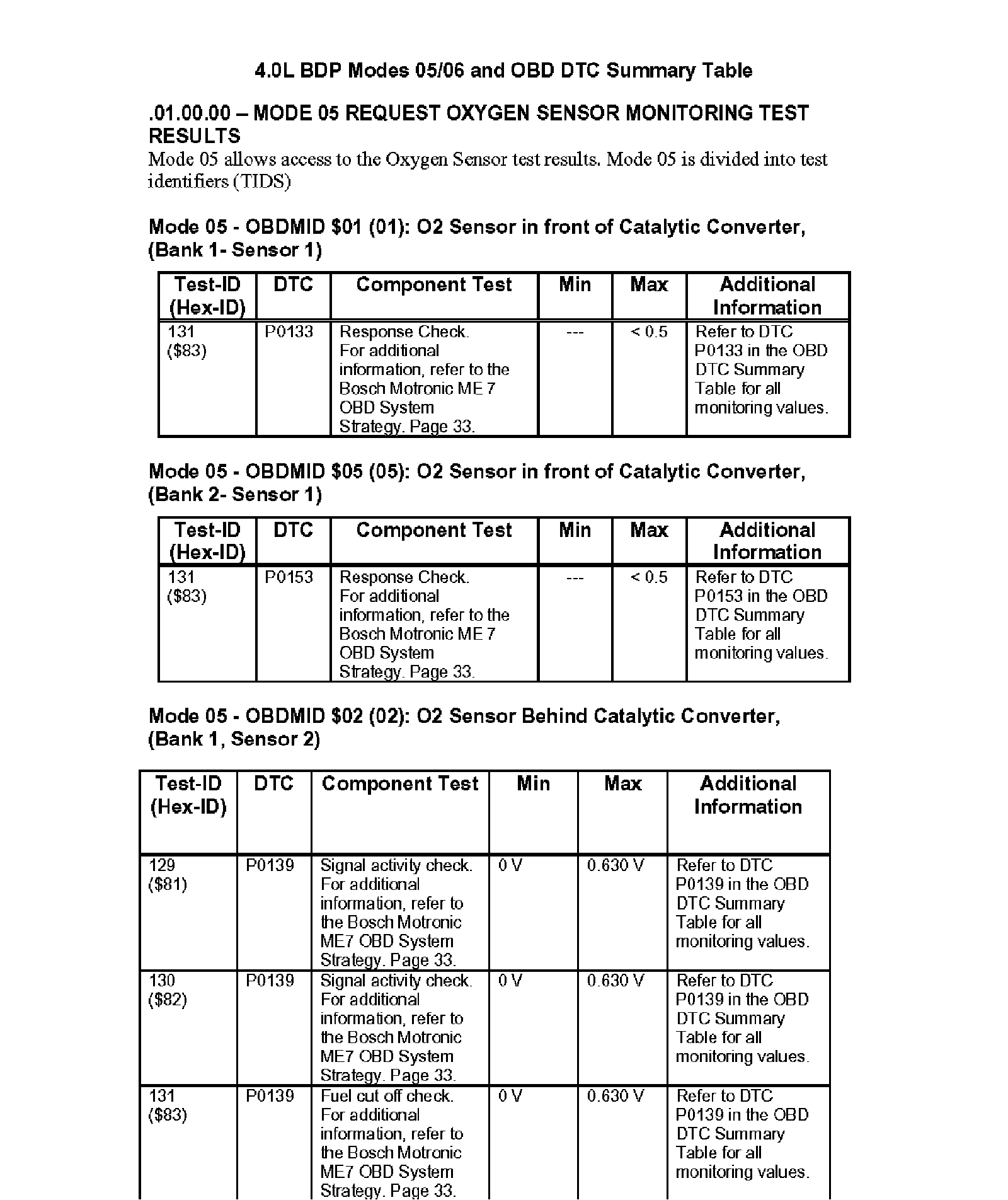 Modes 05/06 and OBD DTC Summary Table