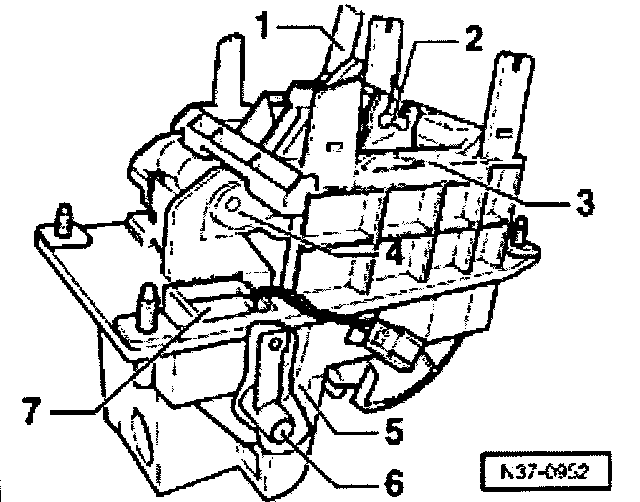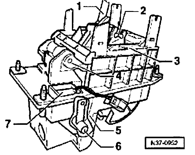 - Shift lock solenoid -7- must be installed together with locking pawl from above in mounting bracket -5-.