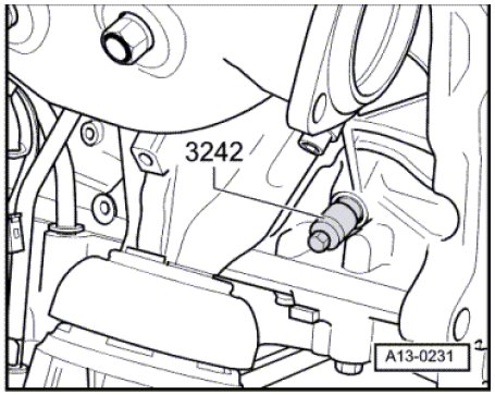 - Remove the (3242) from the hole, install the locking bolt with a new seal - arrow - and tighten to 35 Nm.