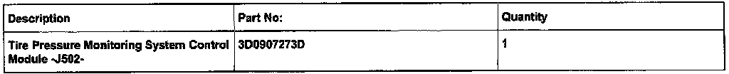 New Tire Pressure Monitoring System (TPMS) Control Modules -J502- (Part No: 3D0907273D) are being distributed through service parts and require new coding.