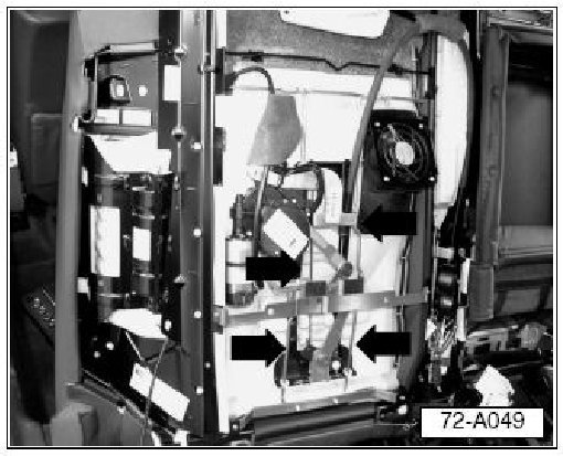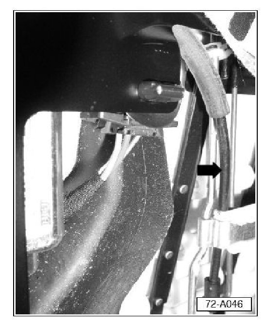 - Remove front seat backrest cover. See Repair Manual, Group 72, Body Interior, Seat backrest cover, removing and installing.