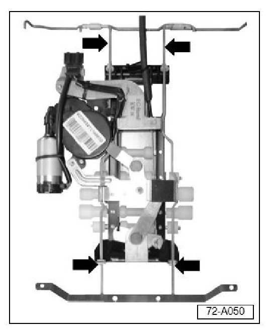 - Apply special grease (Part No. G 000 450 02) along length of support track - arrows- (see Illust. 72-A045 for view of lumbar support).