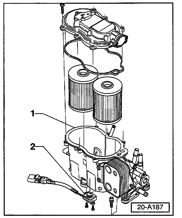 - Remove fuel filter housing -1- (see Repair Manual Group 20 Fuel supply Fuel filter, assembly overview).