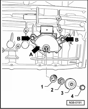 - Carefully bend back the hooks of the lock washer - 1 - using a screwdriver.