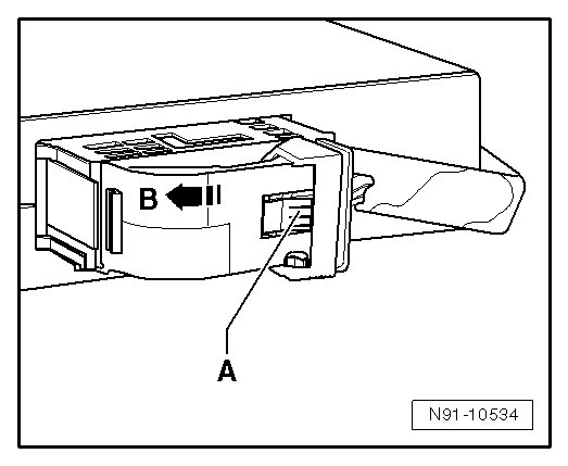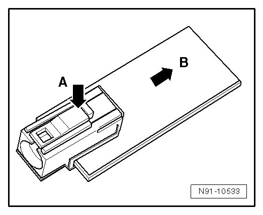 - Operate locking mechanism - A -, fold bracket in direction - B - and remove connector.