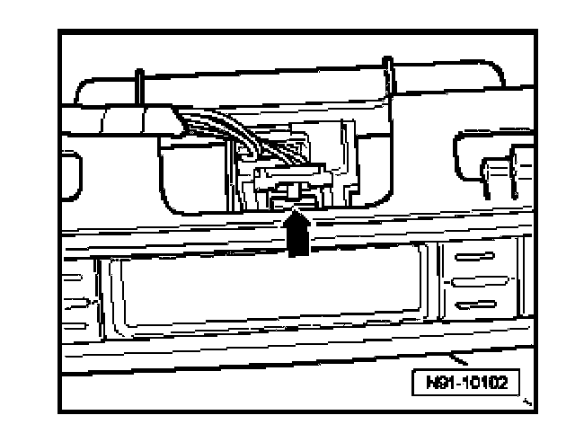 - Lift connector lock in direction of -arrow- and disconnect electrical connection.