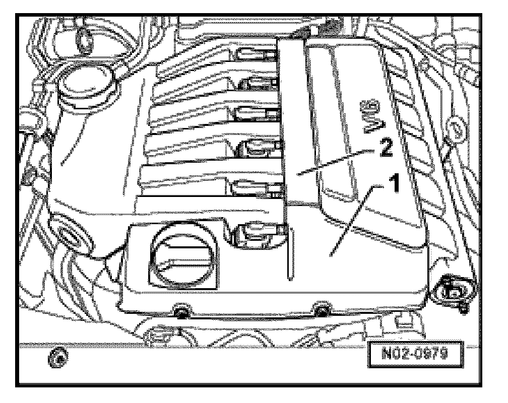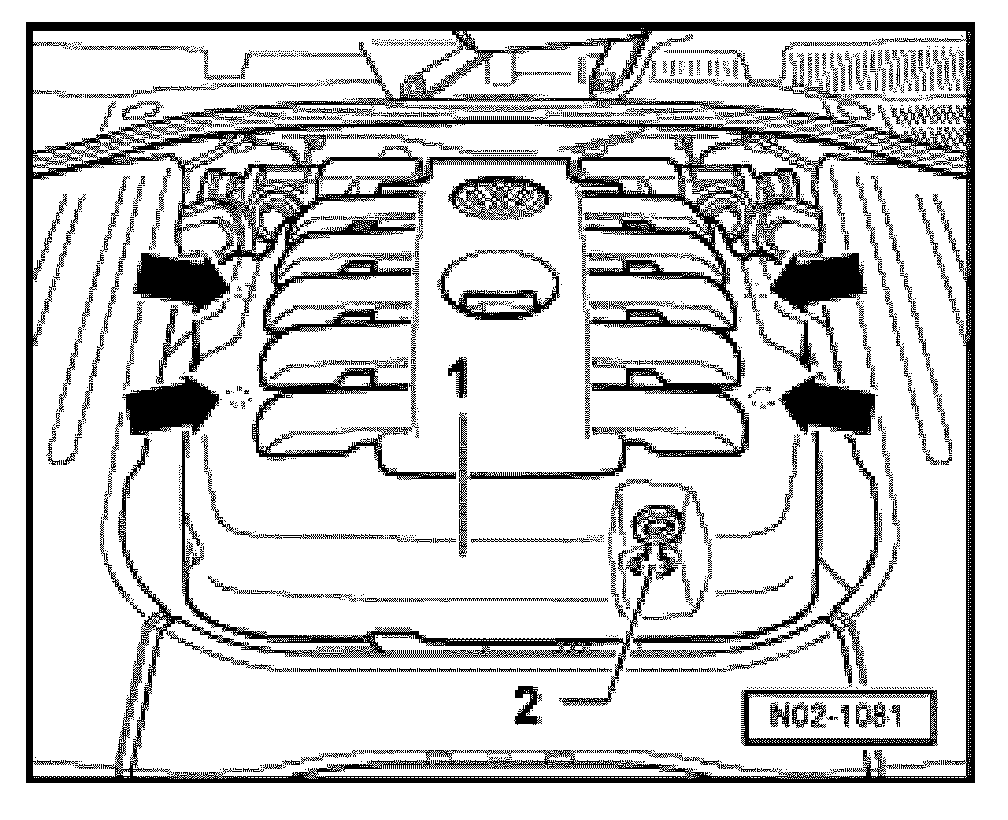 - Unclip engine compartment covers -1- and -2- and remove upward and off.