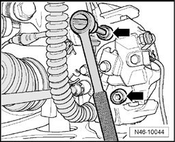 - Secure brake caliper to brake carrier using both guide pins - arrows -.