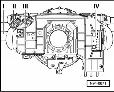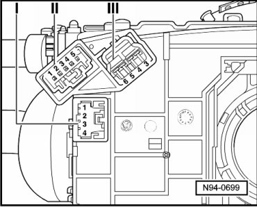 III Multi-pin harness connector for Airbag Spiral Spring/Return Spring With Slip Ring (F138) and Steering Angle Sensor (G85)--> [ III - 4-Pin Connector ]