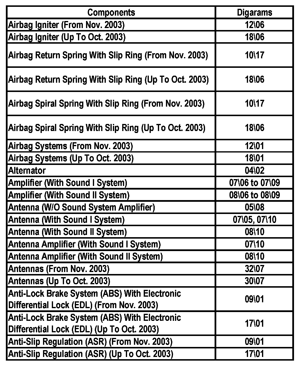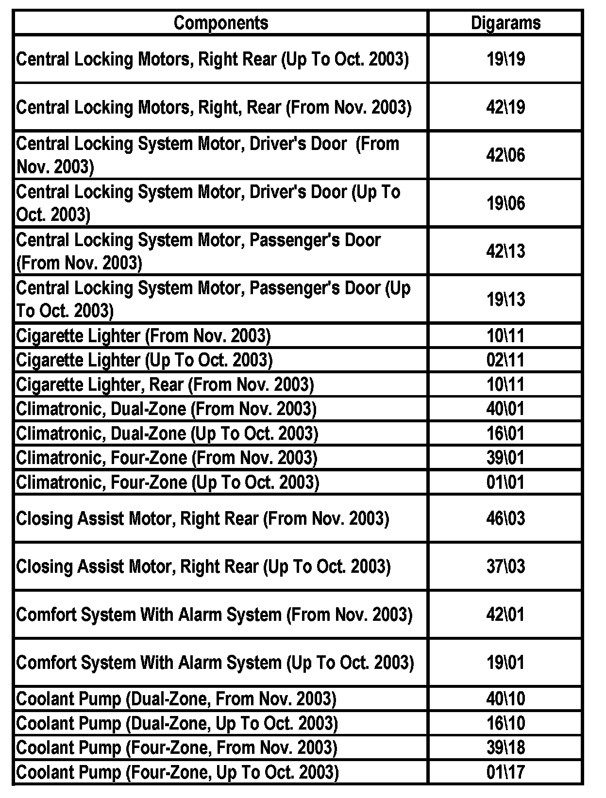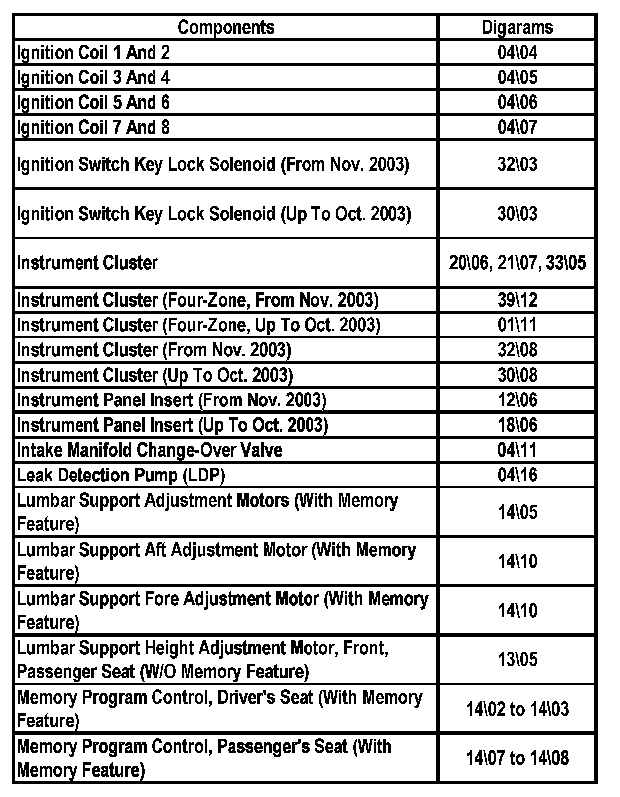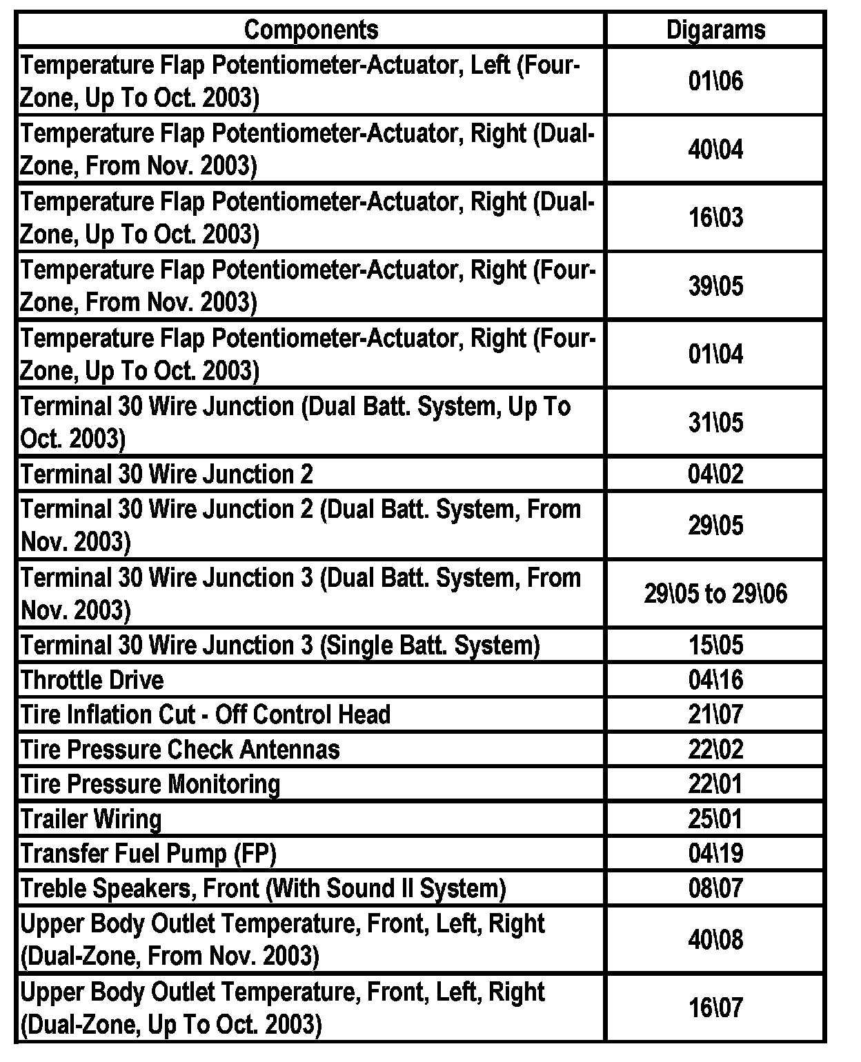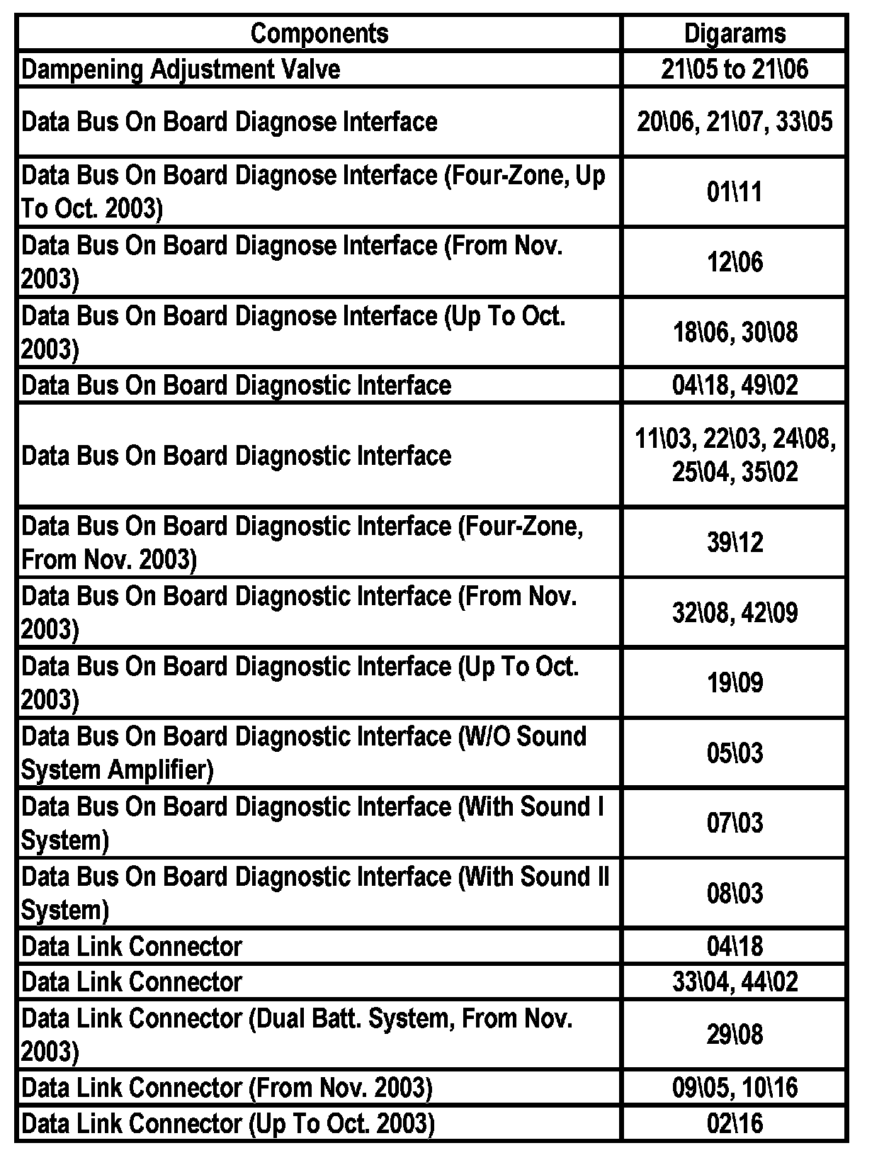 Master Diagram Index