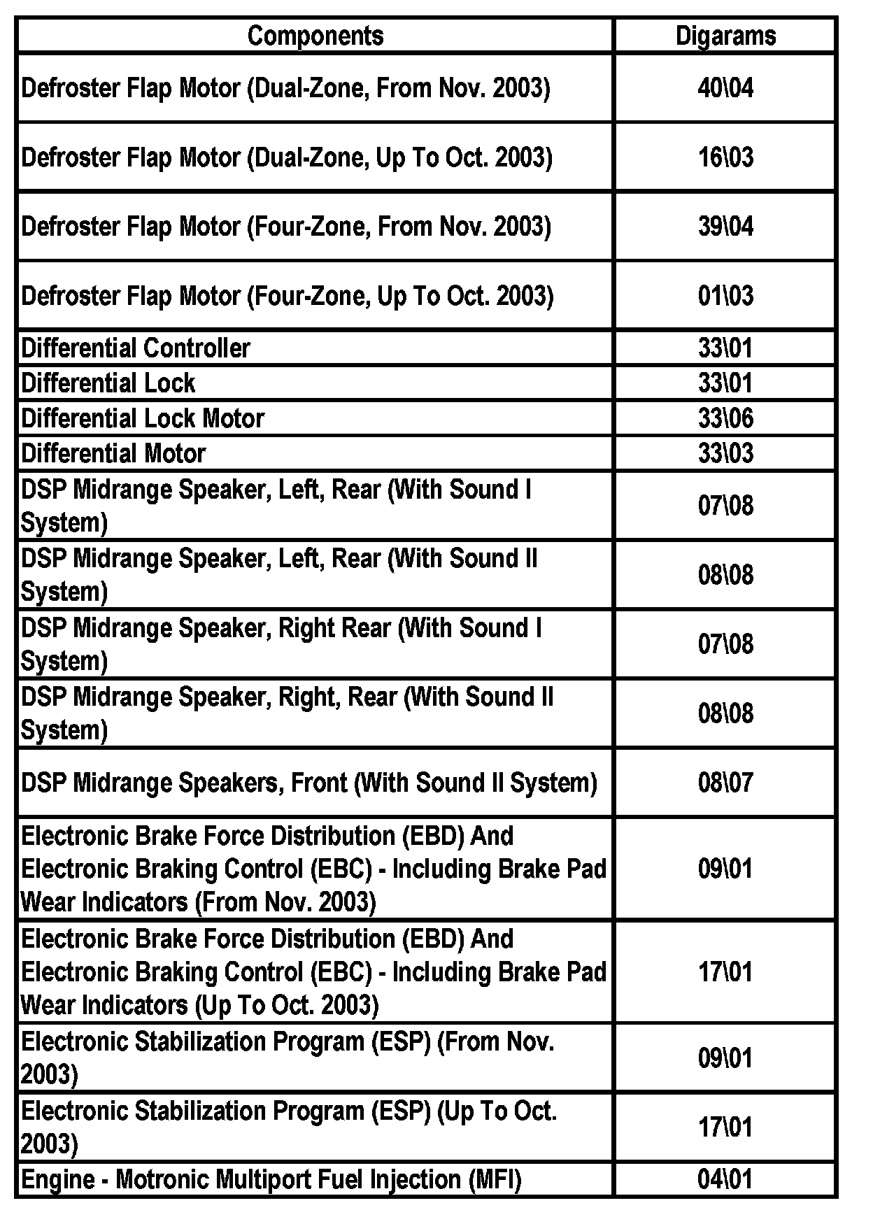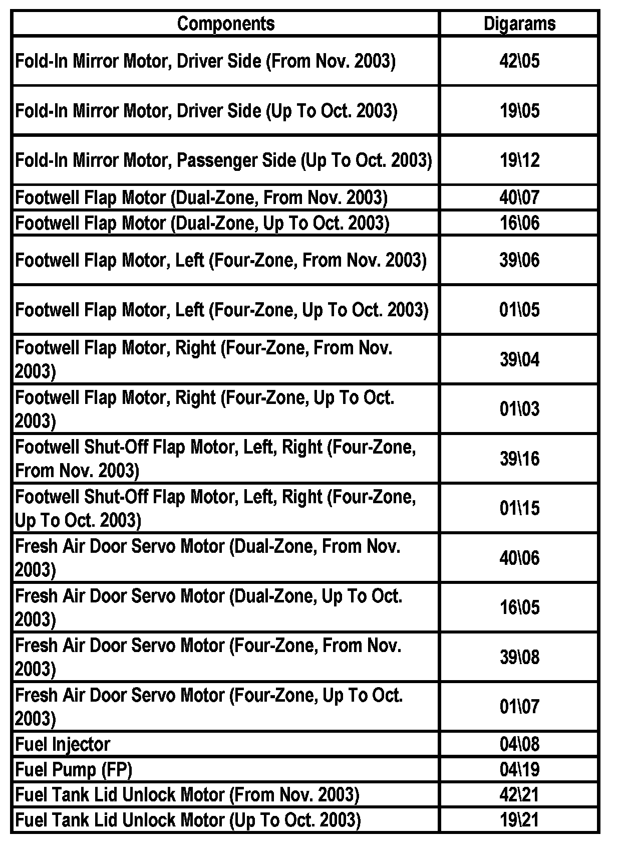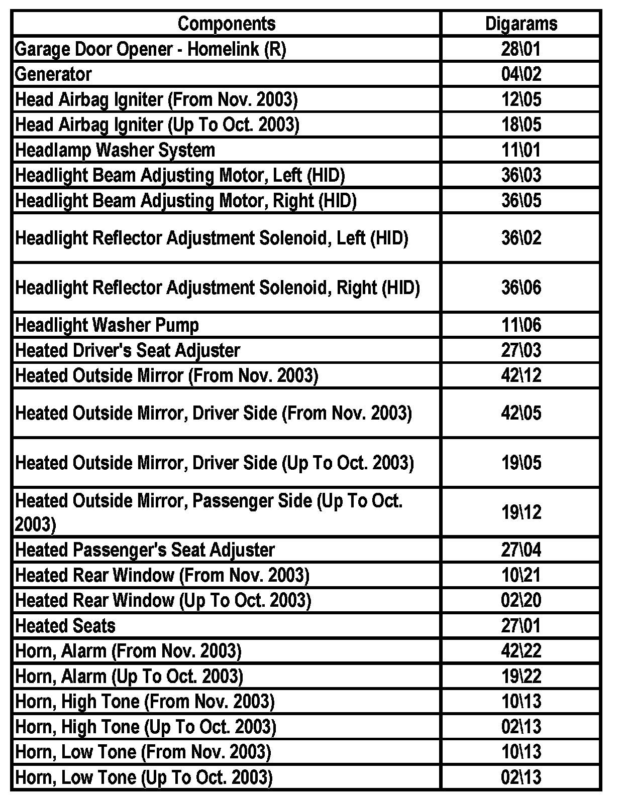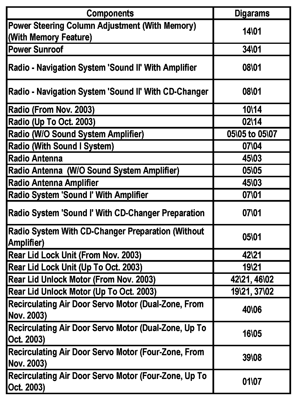 Master Diagram Index