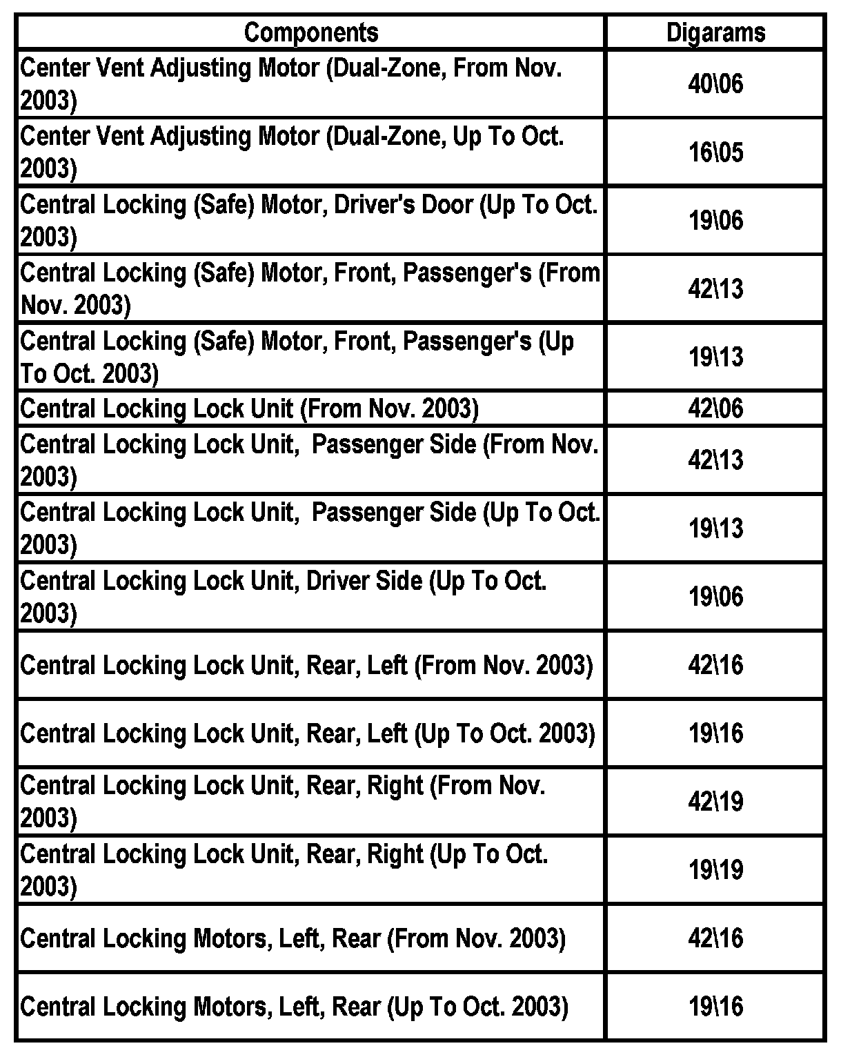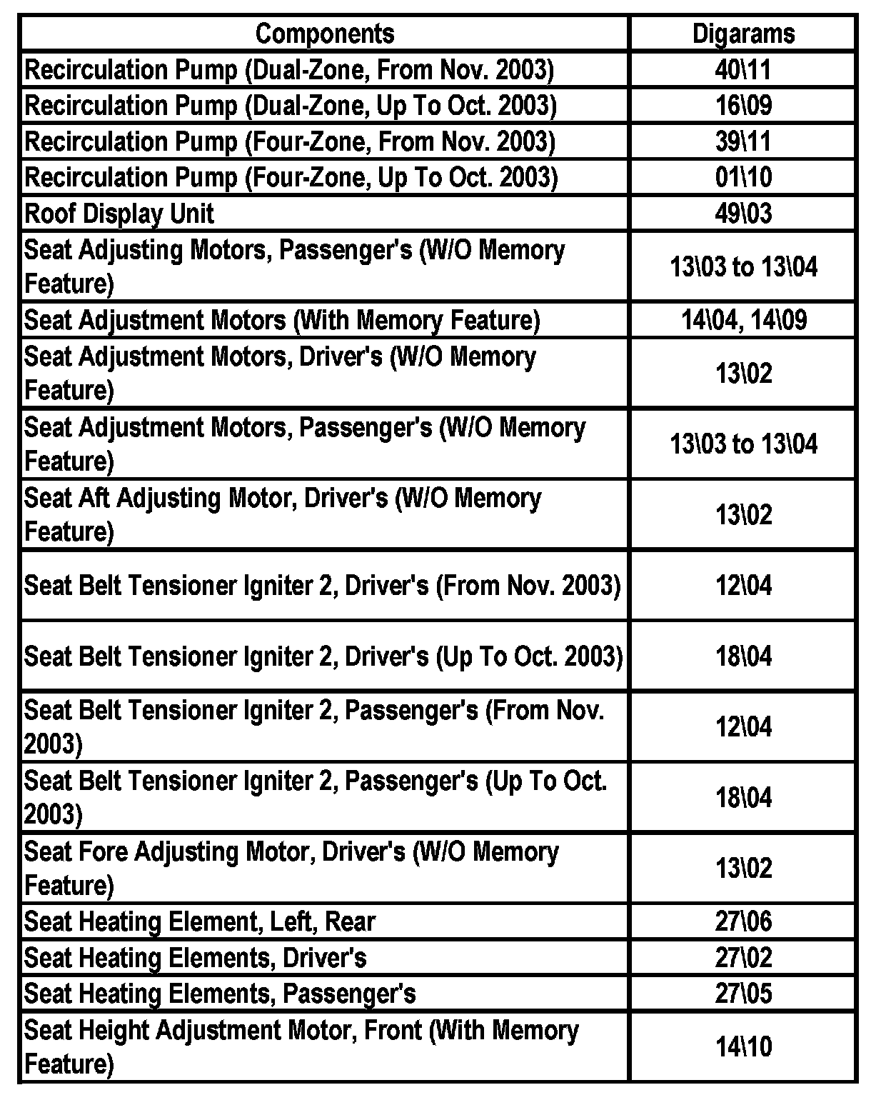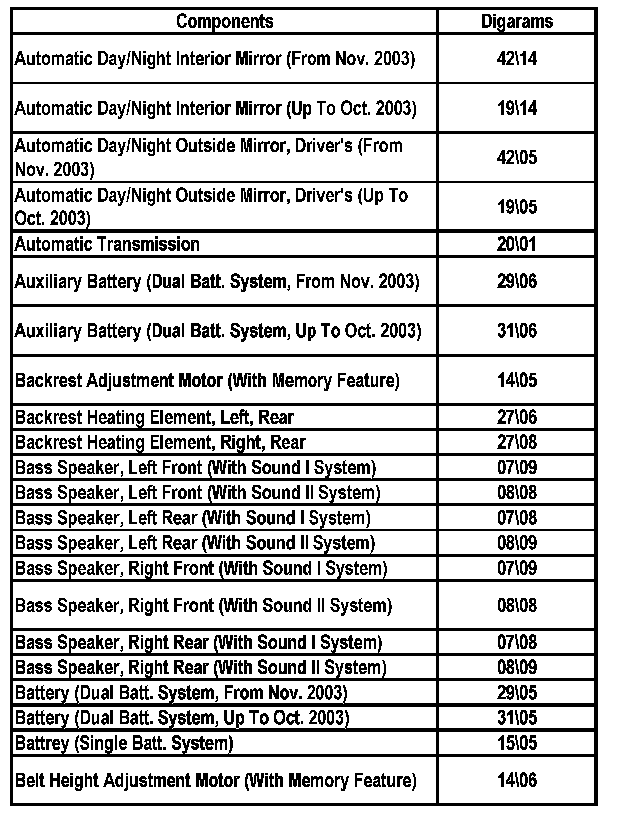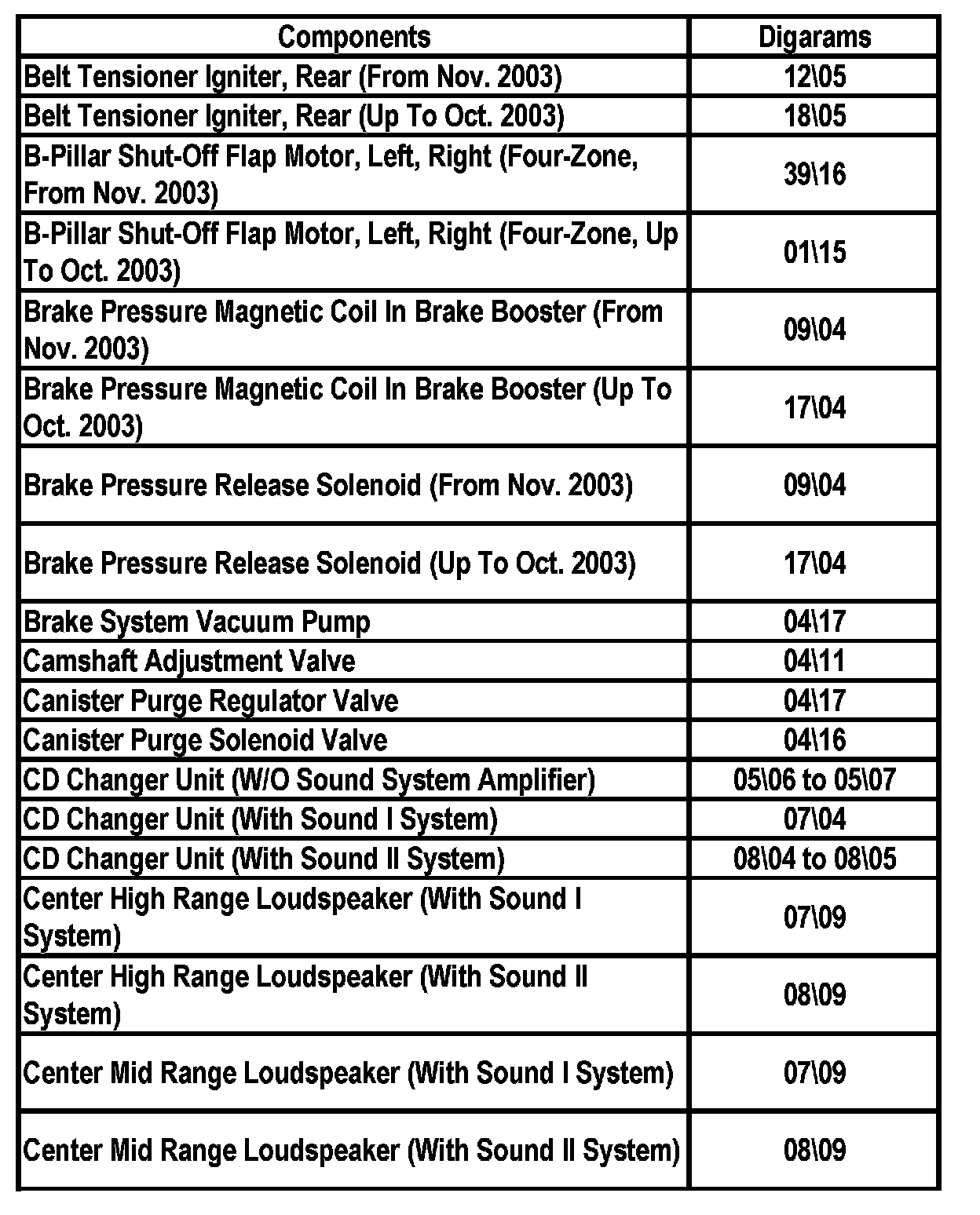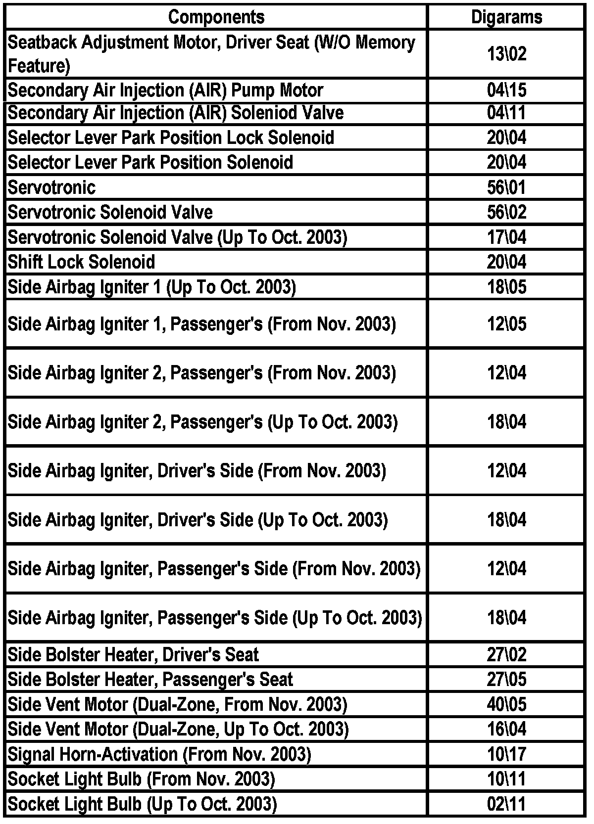 Master Diagram Index