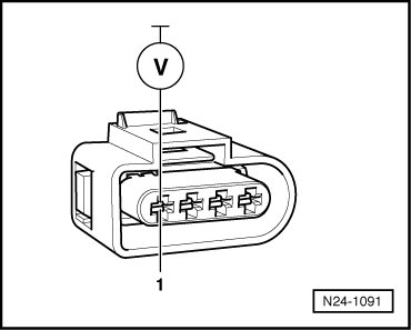 - Check voltage supply at 4-pin connector terminal 1 to Motronic Engine Control Module (ECM) Power Supply Relay (J271) according to wiring diagram: