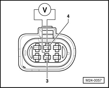 - Check voltage supply at 6-pin connector terminal 3 to Motronic Engine Control Module (ECM) Power Supply Relay (J271) according to wiring diagram: