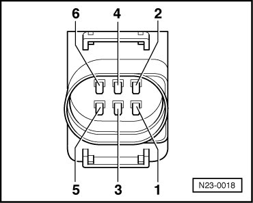 - Connect multimeter to connector terminals 2 + 6 for voltage measurement.