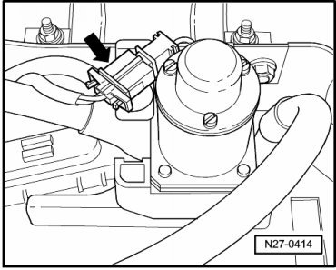 - Disconnect battery isolator connection - arrow -.