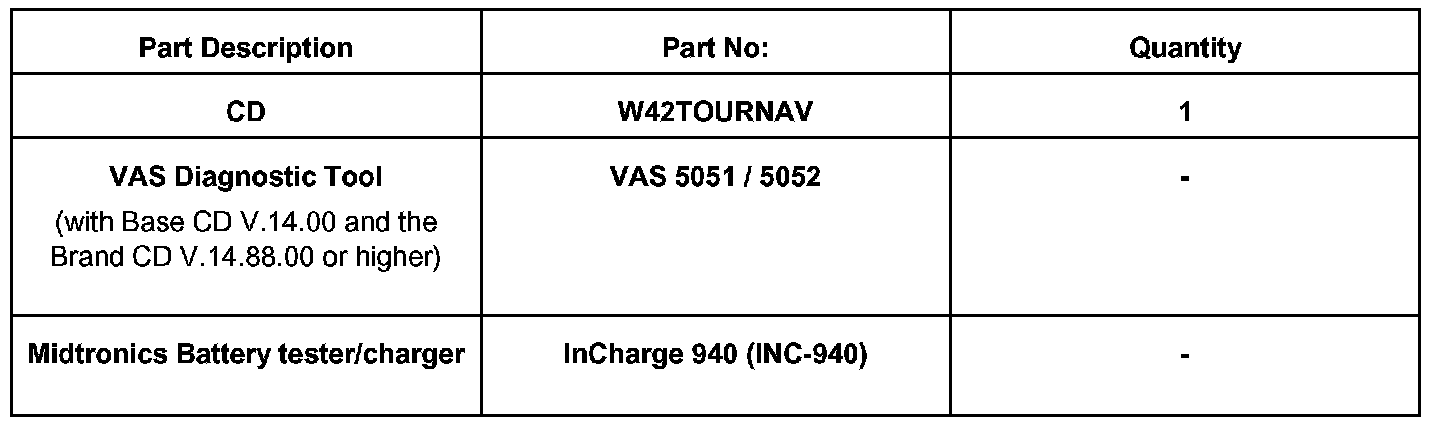 Tip: Additional copies of the "Update - Programming" CD (Literature Number CD W42TOURNAV) may be ordered from the Volkswagen Technical Literature Ordering Center.